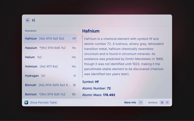 Show information about an element.