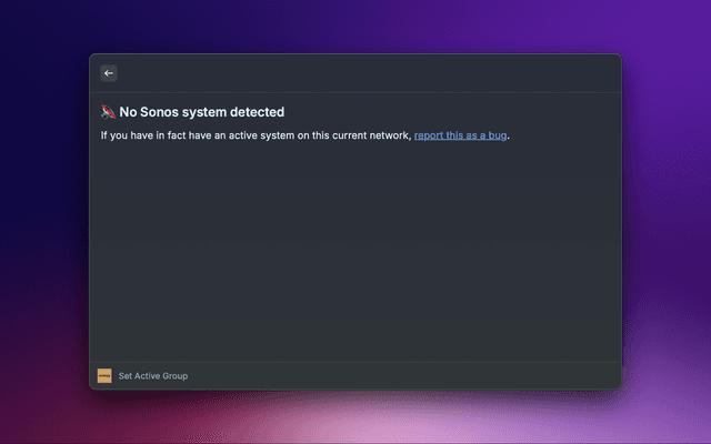 This extension will automatically try to detect your Sonos system. Make sure this computer is connected to the same local network as the system you are intending to control.