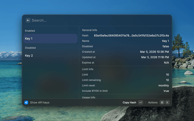 Raycast extension to view your OpenRouter credits and manage your API keys.