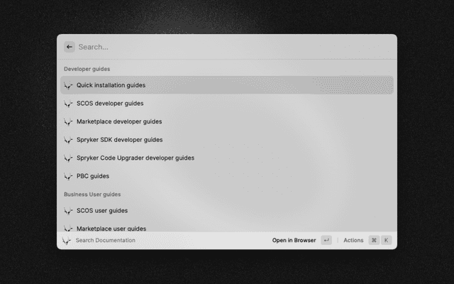 This extension will allow to easily go through the Spryker docs directly from Raycast. It will also allow searching within the documentation with algolia.