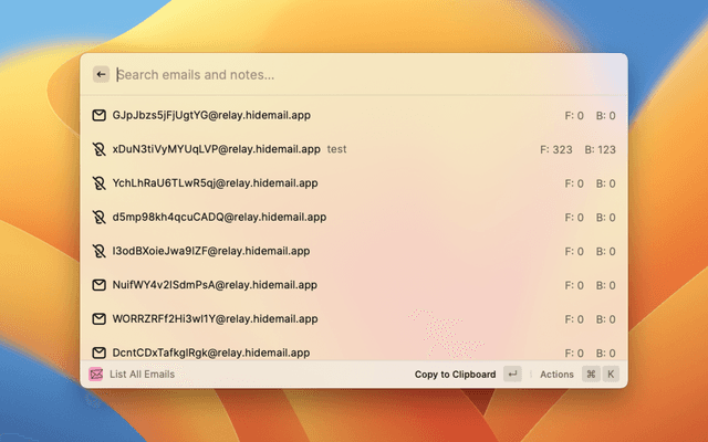 Features from HideMail API