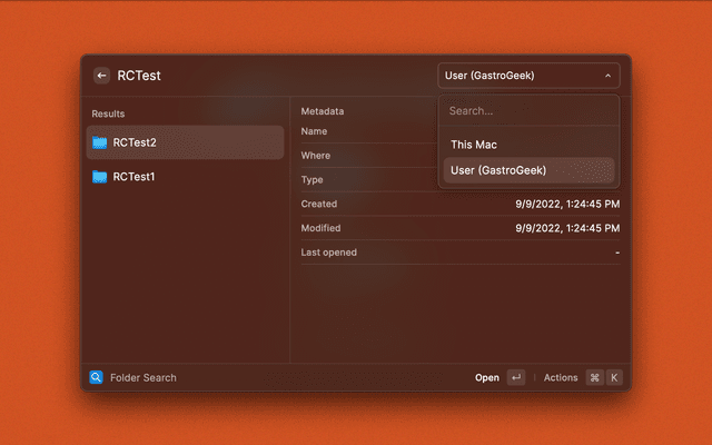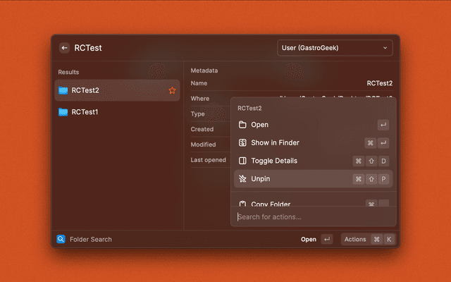 • Filter results by pinned folders, user directory, or entire Mac