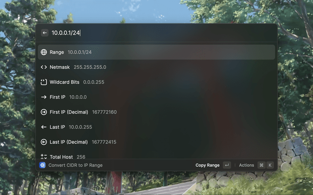 Input one CIDR string, and it will help you convert it to more detailed info.