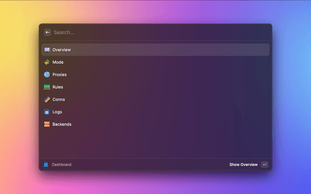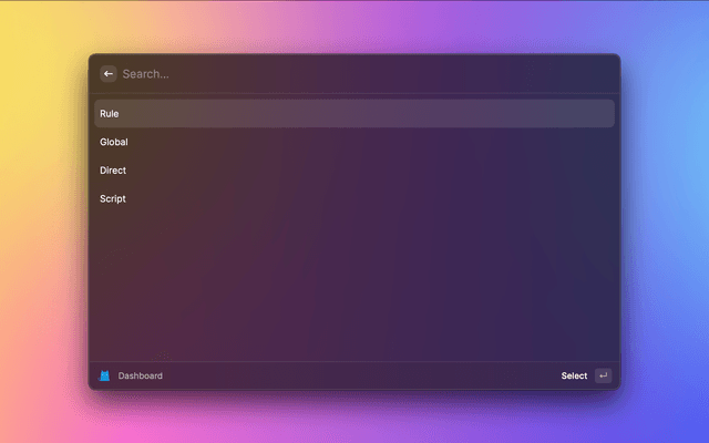 Monitor your Clash with Raycast. Including Proxies, Connections, Rules and Logs data, and support backends switch.