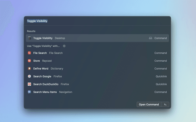 A Raycast Toggle Desktop Visible Extension. Very easy to use.