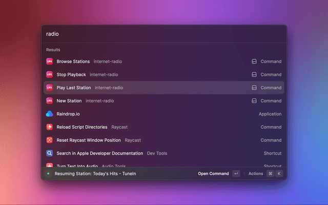 For the New Station command, you will need to provide a direct stream link playable by Music.app. For a lot of streams, including many on TuneIn, you can find a direct url to an audio file by observing the network tab in your browser’s inspector. Often, such URLs will be extension-less, e.g. "http://uk1.internet-radio.com:8355/stream," or to an MP3 or AAC file (but there are exceptions). At the moment, Internet Radio does not support HLS formats (i.e. m3u8).
