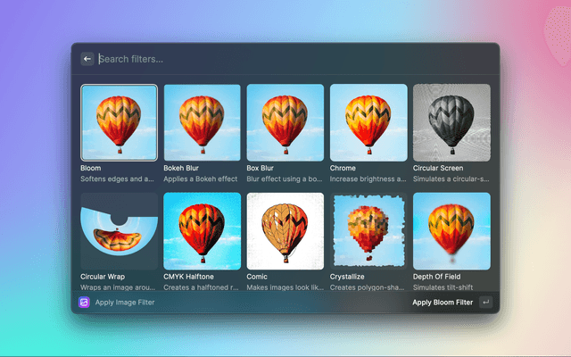 • Apply various filters to the provided images using Apple's CIFilters