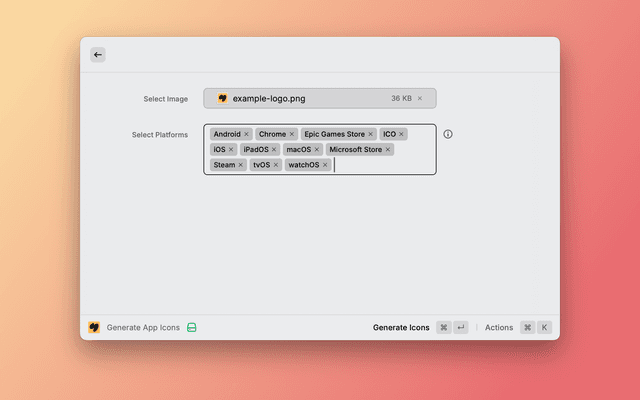 App Icon Generator is a Raycast extension that allows you to easily create app icons for various platforms from a single image file. This tool streamlines the process of generating multiple icon sizes required for different devices and operating systems.