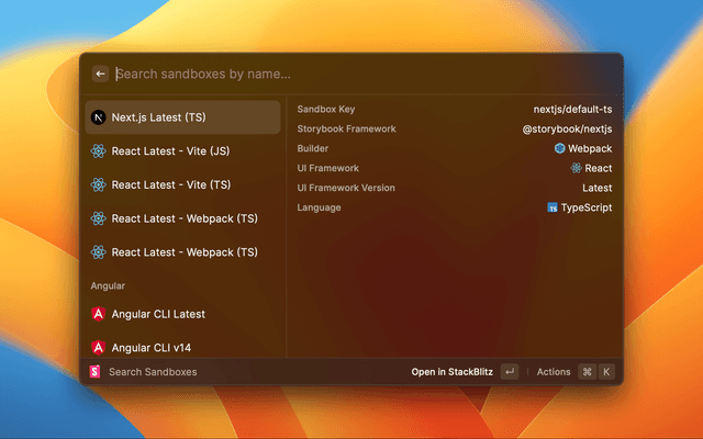 Create new Storybook sandboxes locally, or online in StackBlitz