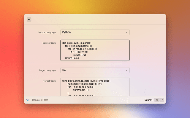 Code translateTranslate Form