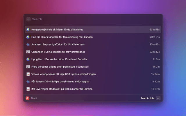 Raycast extension for fetching and displaying news from omni.se