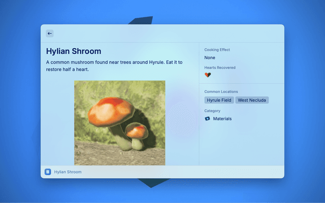 This extension allows you to conveniently search and access information from the BotW Hyrule Compendium.