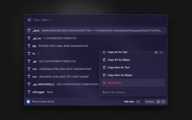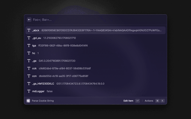 Parses a cookie string, visualize it and convert it to an object.