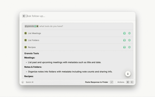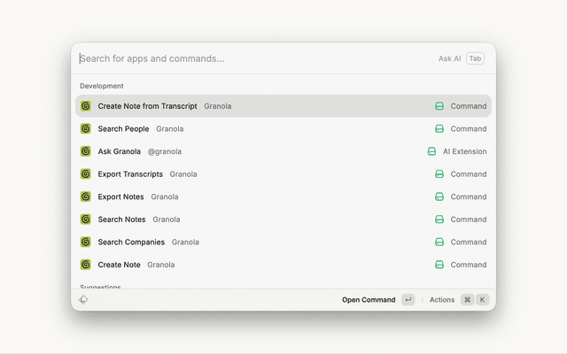 • Recipes - Search and use Granola recipes within Raycast AI