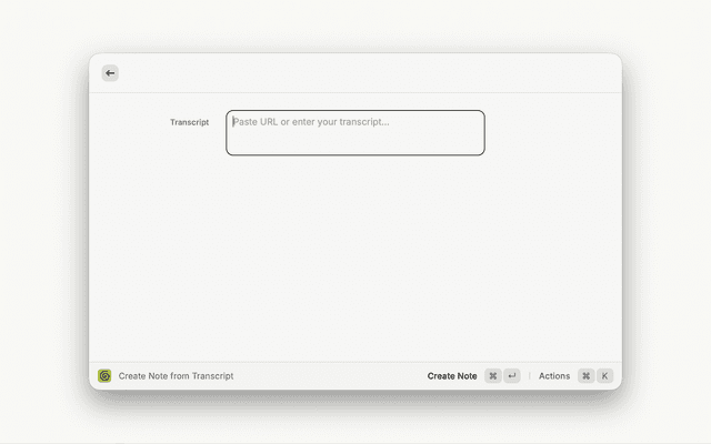 • Create Note from Transcript - Create a new note from text transcripts or YouTube videos with AI-powered summaries