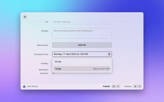 • Publish scheduled status with natural date format.
