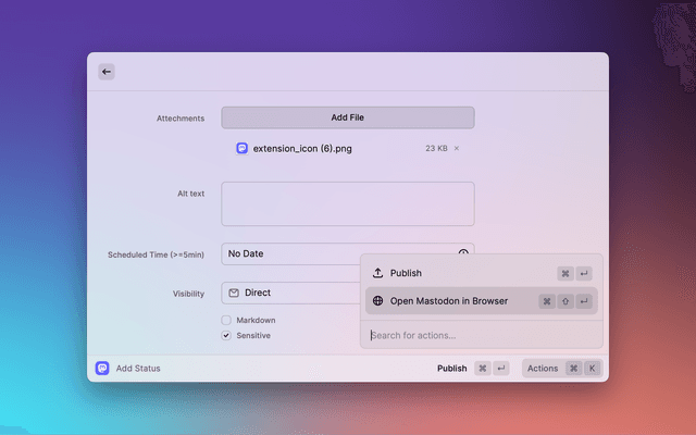 The original version was based on Raycast-Akkoma, thanks to the generous contributions of BasixKOR and pernielsentikaer, many new features have been added.