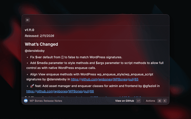 This mod provides several commands centered around managing the WP Bones WordPress plugin framework. It provides quite a few commands for varying uses, so there should be something for everyone! Take a look at the scenarios below to get a feel for how you might use the extension.