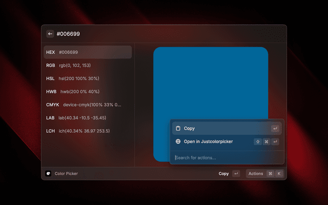 JustColorPicker Raycast extensions, used with JustColorPicker tool