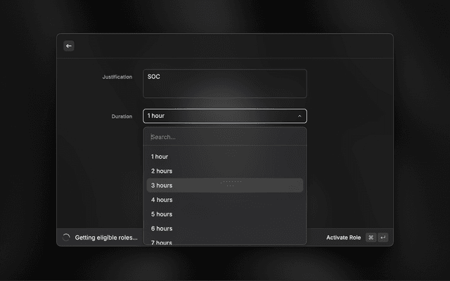 3. Choose a role to activate and fill out the "justification & duration" form.