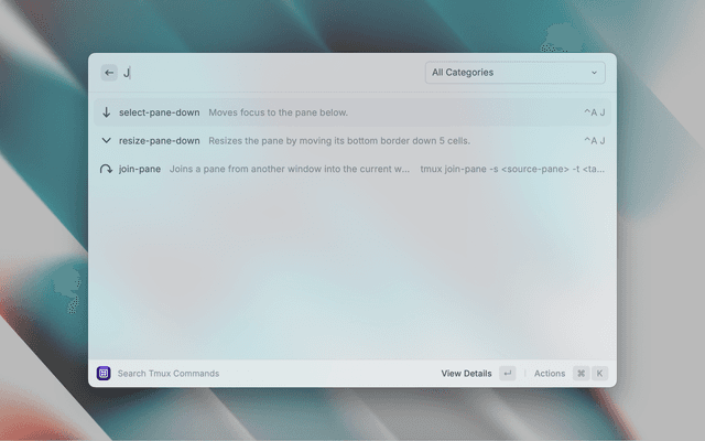 - Open Raycast and search for Search Tmux Commands