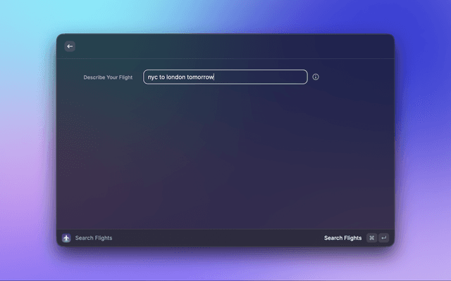 - Press Enter - AI parses your query and opens Skyscanner