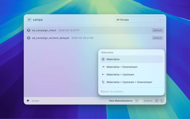 • Materialize — materialize the selected asset