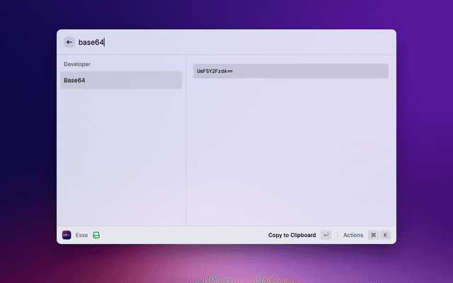 When run, this extension reads the text on the clipboard, then presents a list of Esse's actions for you to choose from. After choosing an action, the transformed text is written back to the clipboard.