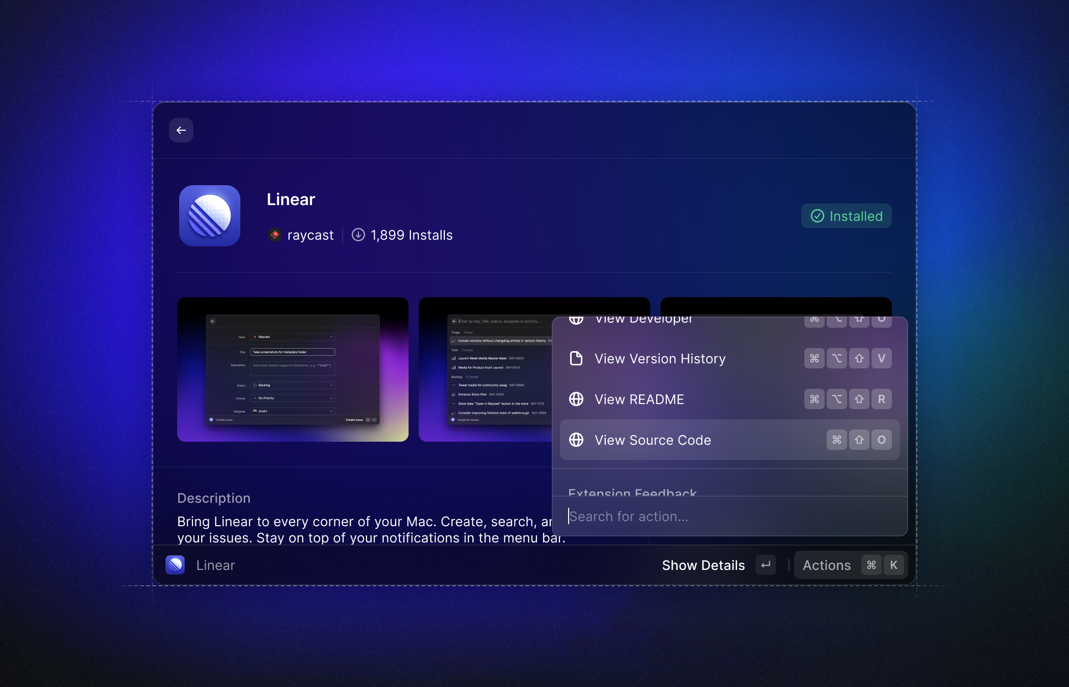 By converting the Extension, we also added a Menu Bar Command to show unread notifications, a new Command that uses arguments to create issues for yourself quickly, and improved more things.