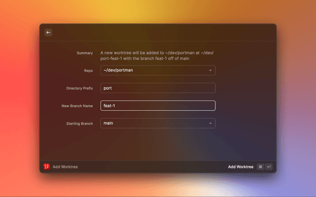 View, add, and remove git worktrees.