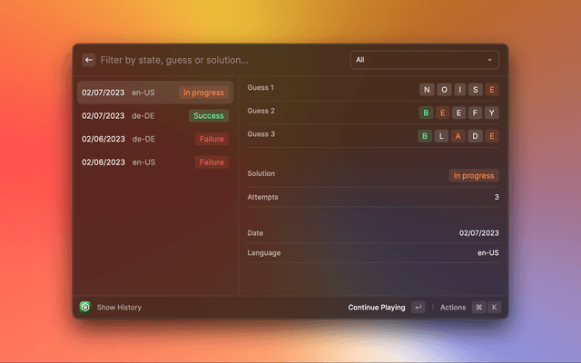 Play Wordle with Raycast, completely offline