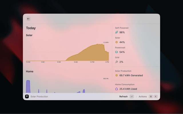 Monitor your Tesla solar panels and Powerwalls from Raycast.
