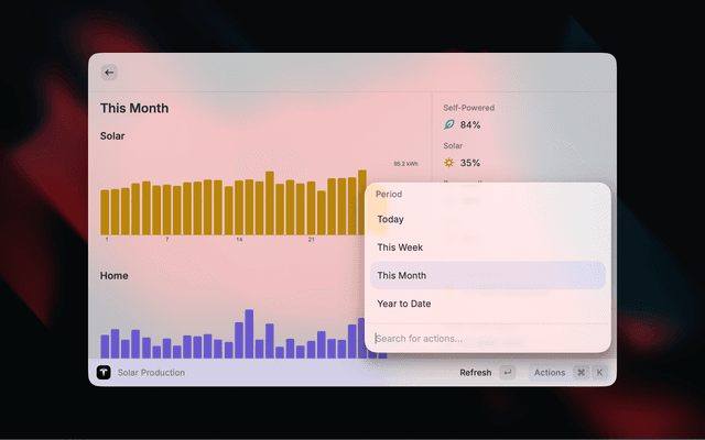 - Today Summary: an AI-generated 2–3 sentence plain-English explanation of the day's energy activity appears above the charts (requires Raycast AI; can be disabled in preferences)