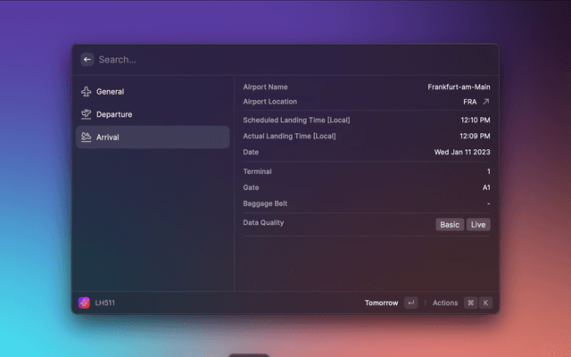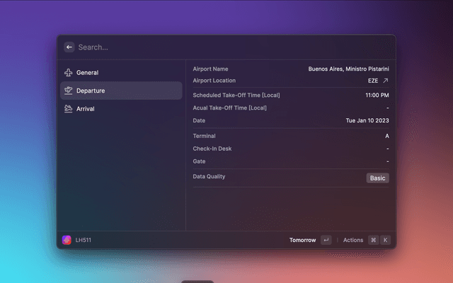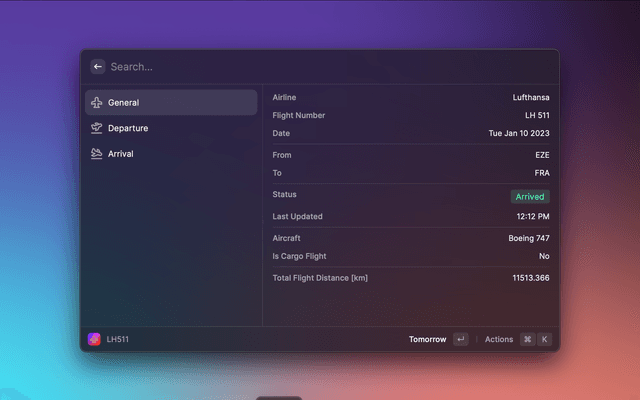 Track your flight with your flight number by using AeroData Box API directly in Raycast.