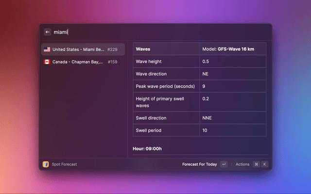 All data is currently being fetched from Windguru. Windguru employs multiple data models for both weather and waves, and depending on the spots chosen by you, different models may be chosen to provide you with weather and wave information. In future versions of the extension I'm planning to cross different services so that the forecasts may be more reliable. It's a work in progress, but with your feedback we can make it faster.