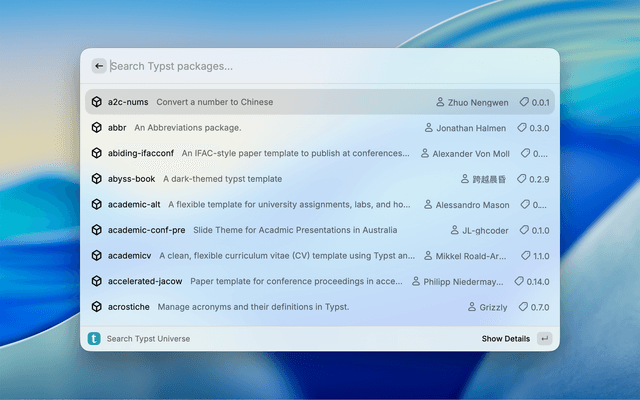 Search for Typst Universe