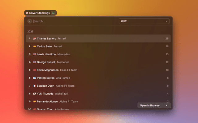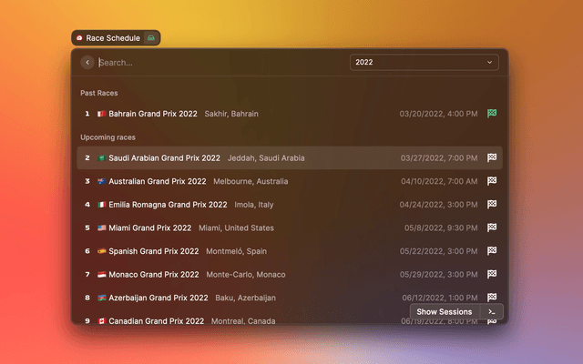 Formula 1 date and information for Raycast.