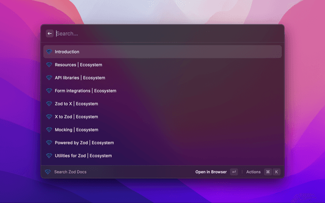 Search Zod docs and open in the browser