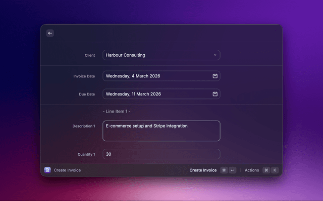 - Open "Create Invoice" from Raycast