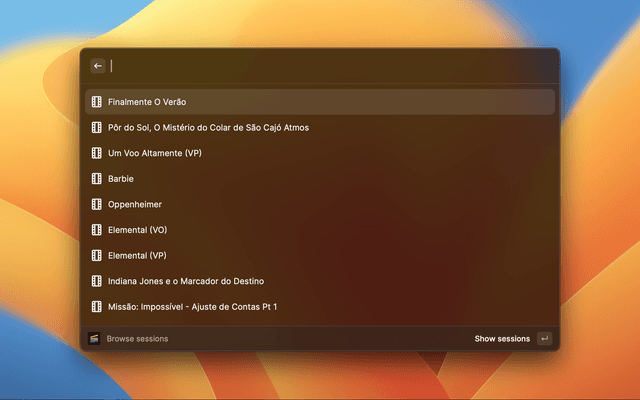 Shows all movies and schedules in display by Cinemas NOS.