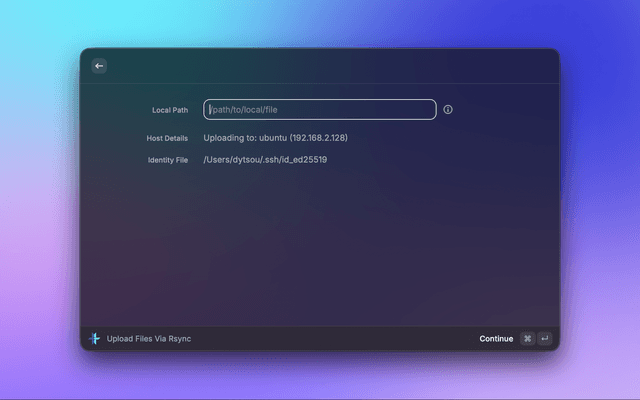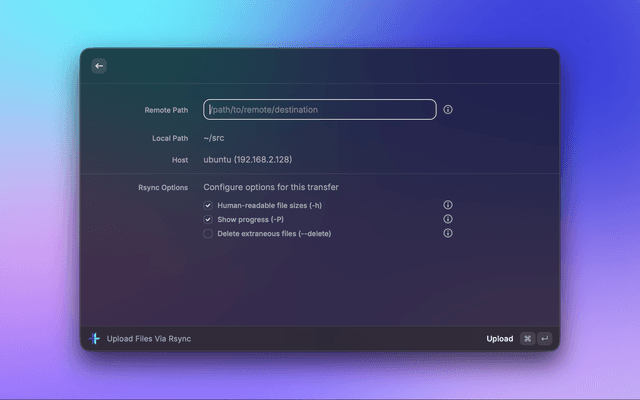 1. Open Raycast and search for "Upload Files via Rsync"