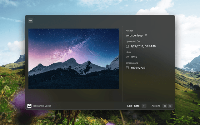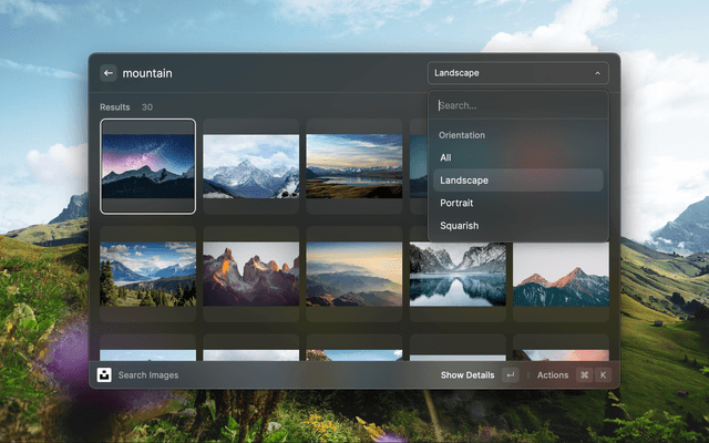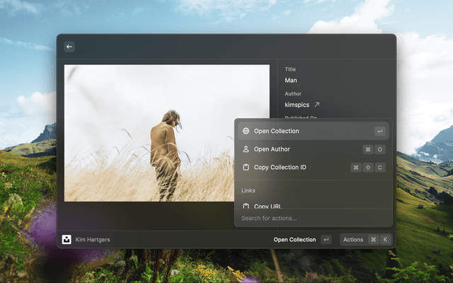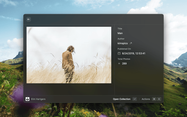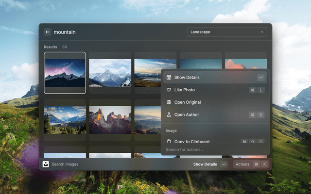 Search images or collections on Unsplash, download, copy or set them as wallpaper without leaving Raycast!