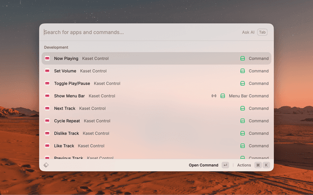 Kaset Raycast Extension