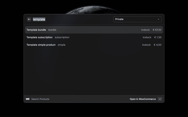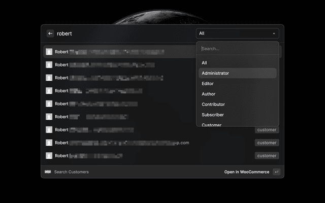 Pressing Enter on any search order, customer, or product will open the corresponding WooCommerce admin page in a new tab of your browser.