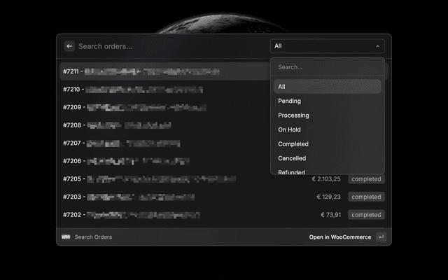 Browse and search WooCommerce orders, customers, and products across multiple stores from Raycast.