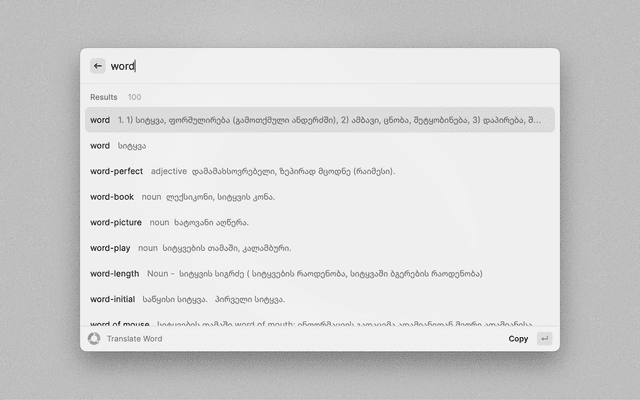 Raycast extension for easily tranlating Georgian words to English and vice versa.