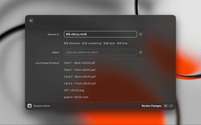 A Raycast extension that lets you collect files and folders from anywhere on your Mac into a virtual "shelf," then run batch actions: copy all to a folder, move all, or rename with prefix, suffix, numbering, or find/replace. Handles conflicts and works across volumes.