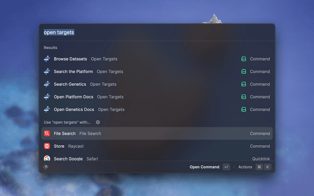 This is an unofficialRaycast extension to facilitate the Open Targets user a convenient entry point to the OT Platform and OT Genetics.