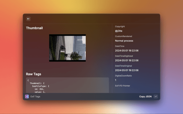 Show metadata (EXIF) for images from clipboard or URL in Raycast.