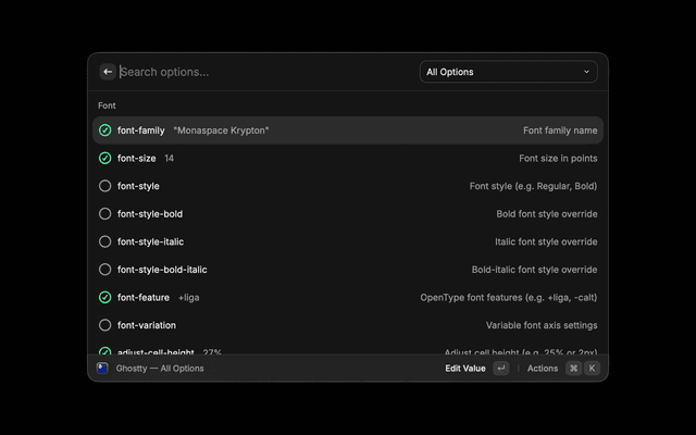 title, the extension uses the last folder name from its effective directory. For example, ~/Developer/slabware/app-fabricator becomes app-fabricator.commands are run by Ghostty as pasted input followed by Enter.commands if you just want an interactive shell in that directory.The Open Workspace from Git Repos command can reuse your saved launch configurations for any repository it finds.